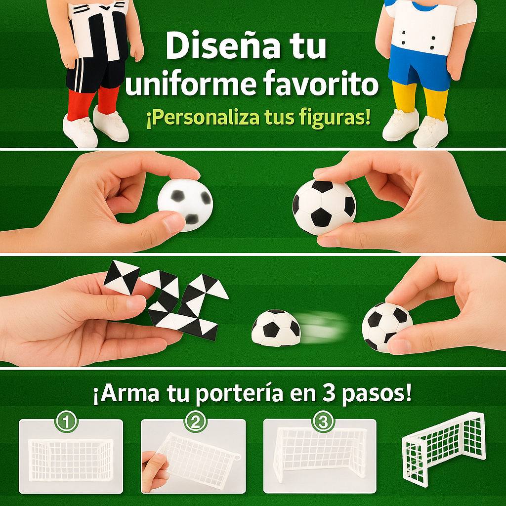 Sí. No son solo coleccionables: incluyen mini balones, porterías y figuras pensadas para que el niño pueda montar sus propios partidos en casa.